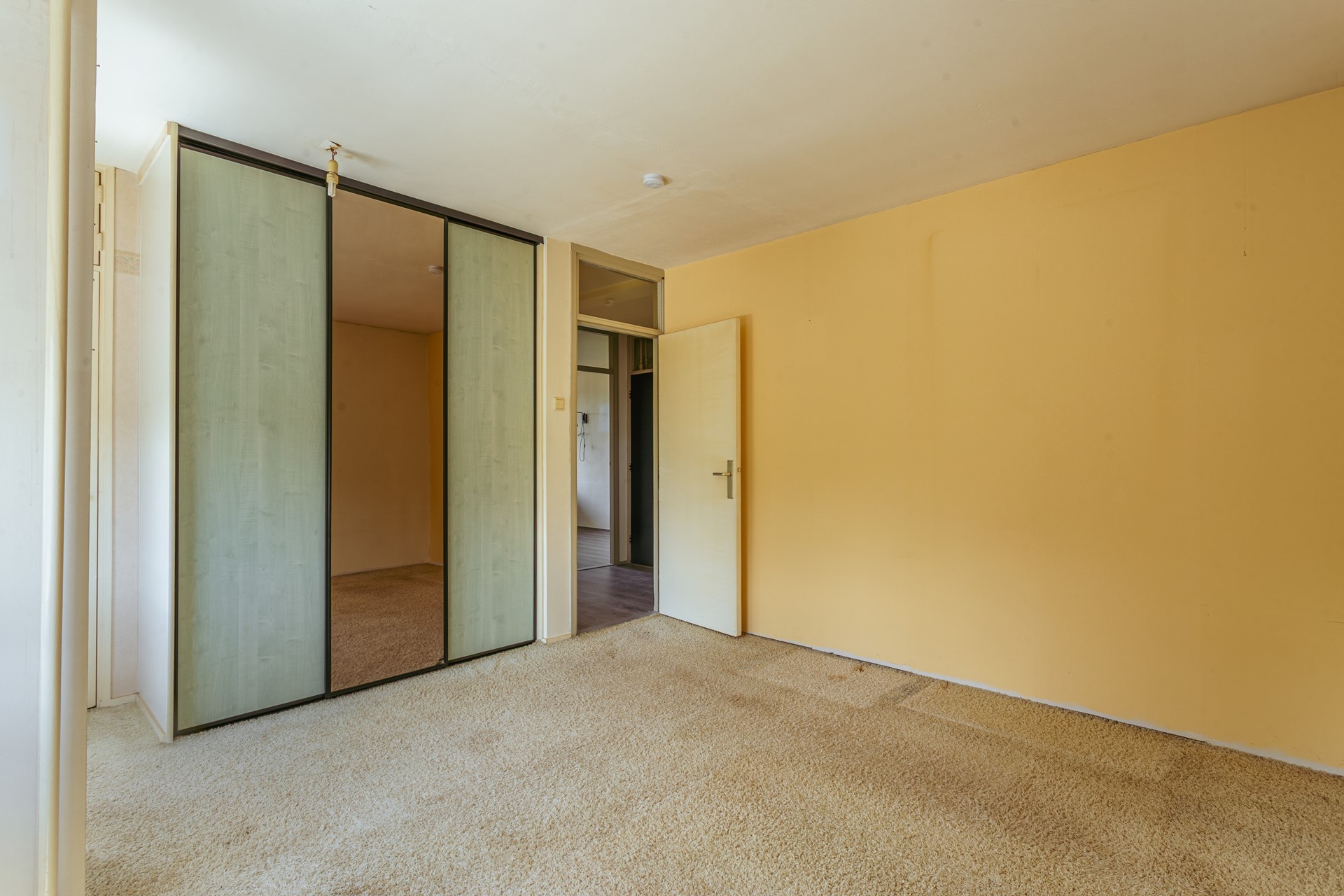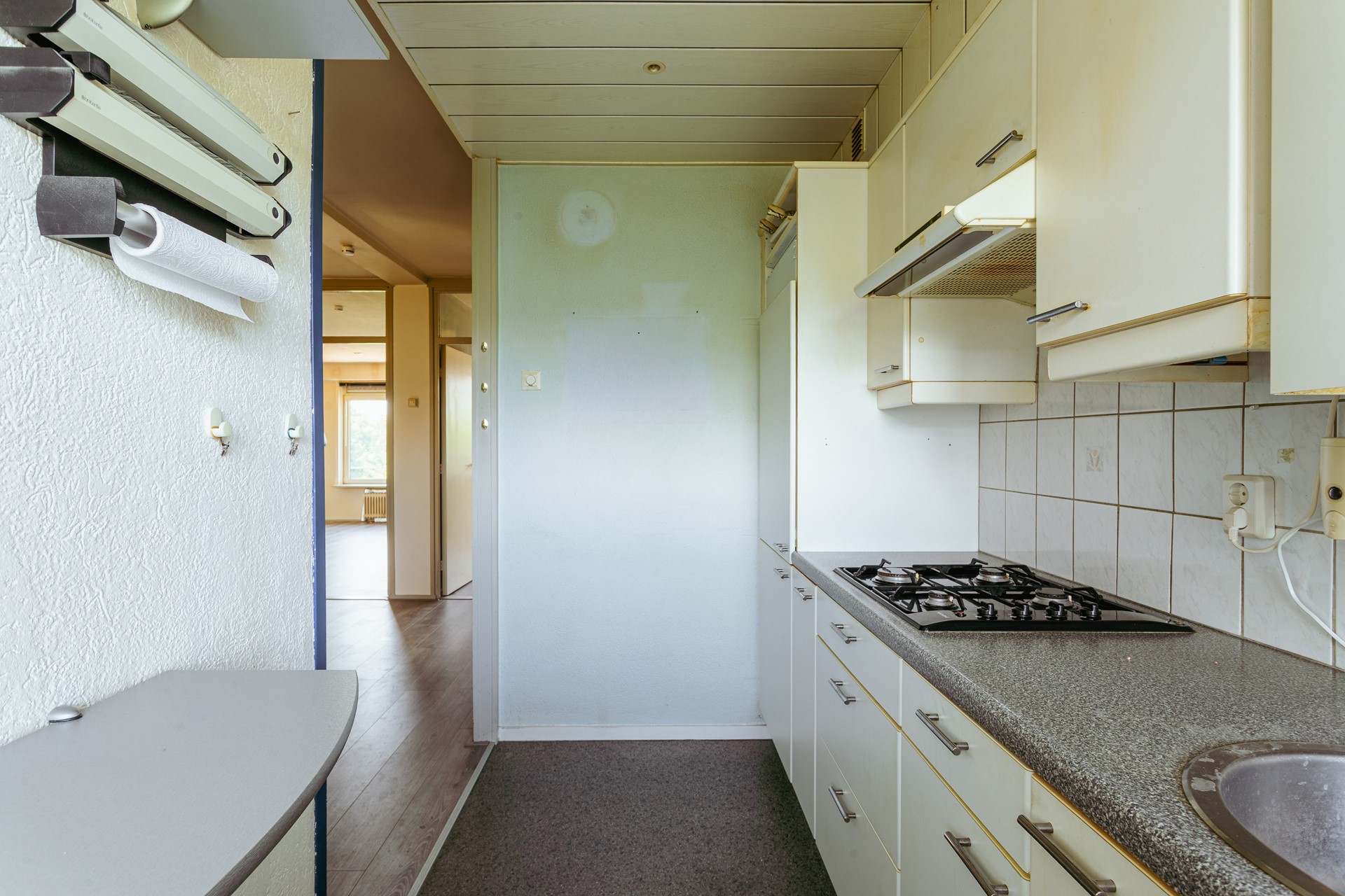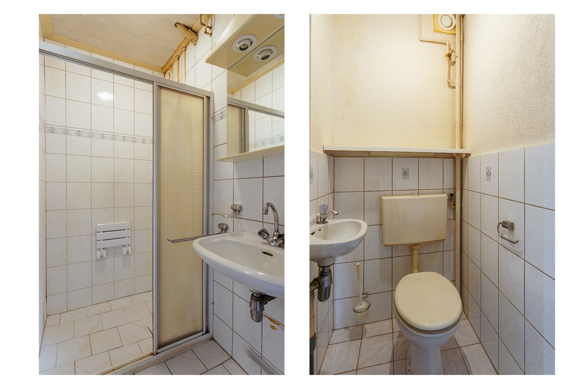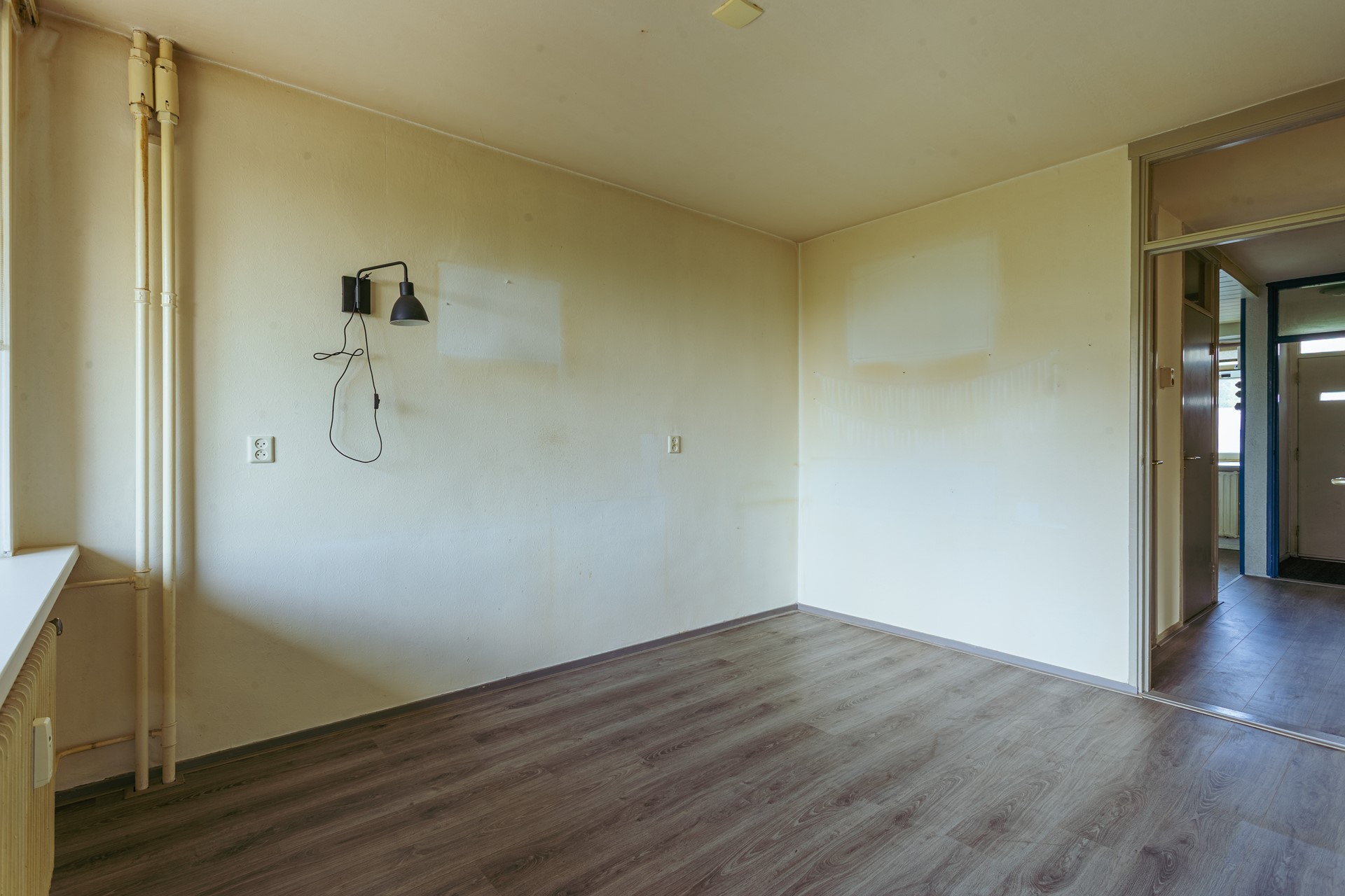 De huidige indeling bestaat uit een tochtportaal met toegang tot de overloop die toegang biedt tot alle vertrekken. Aan de achterzijde bevindt zich de ruime en lichte woonkamer, die eenvoudig kan worden opgesplitst om een tweede slaapkamer te creëren. Vanuit de woonkamer is er toegang tot het balkon op het zuiden, waar je heerlijk van de zon kunt genieten. De aparte keuken is functioneel, maar eenvoudig uitgevoerd – ideaal om geheel naar eigen wens te moderniseren. Aan de voorzijde ligt de ruime slaapkamer met uitzicht op groen. Verder zijn er een badkamer met douche en wastafel, en een separaat toilet.