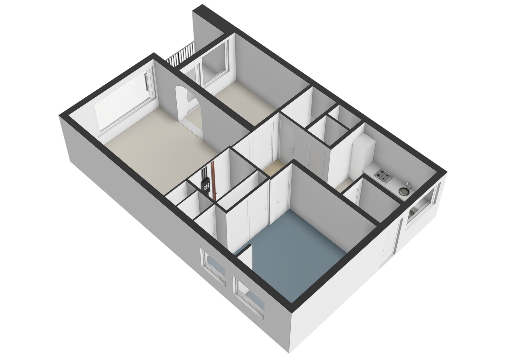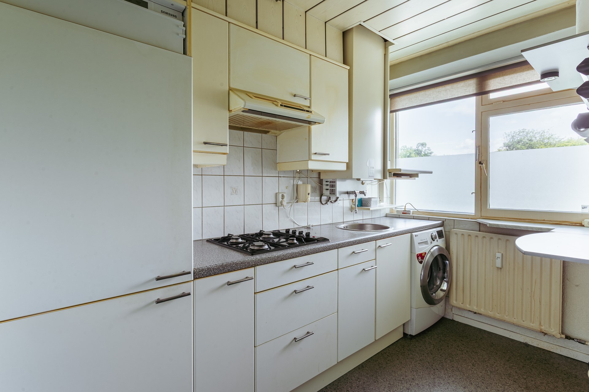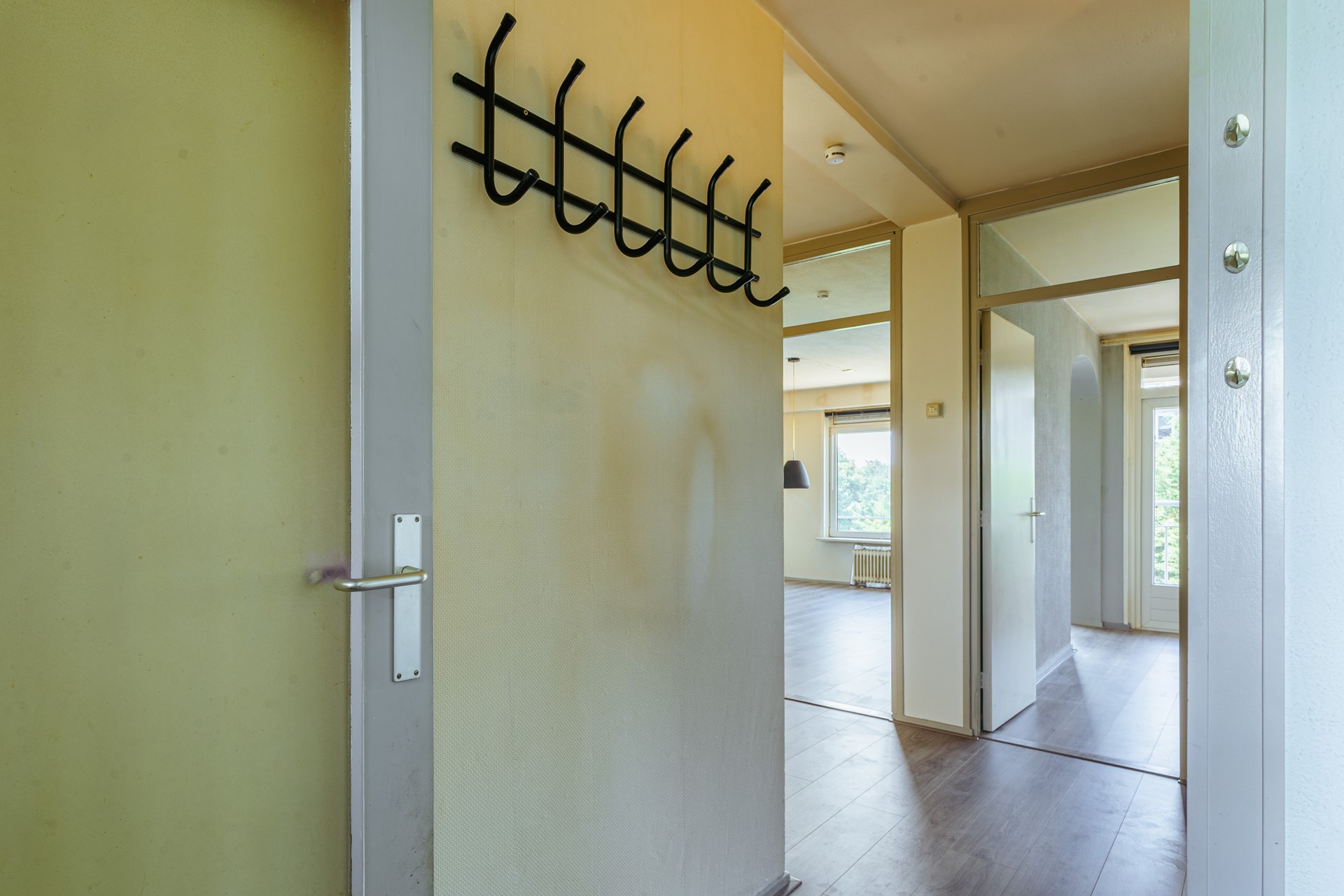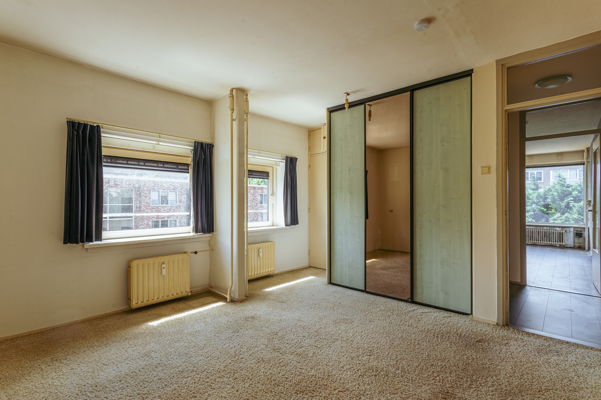 De huidige indeling bestaat uit een tochtportaal met toegang tot de overloop die toegang biedt tot alle vertrekken. Aan de achterzijde bevindt zich de ruime en lichte woonkamer, die eenvoudig kan worden opgesplitst om een tweede slaapkamer te creëren. Vanuit de woonkamer is er toegang tot het balkon op het zuiden, waar je heerlijk van de zon kunt genieten. De aparte keuken is functioneel, maar eenvoudig uitgevoerd – ideaal om geheel naar eigen wens te moderniseren. Aan de voorzijde ligt de ruime slaapkamer met uitzicht op groen. Verder zijn er een badkamer met douche en wastafel, en een separaat toilet.