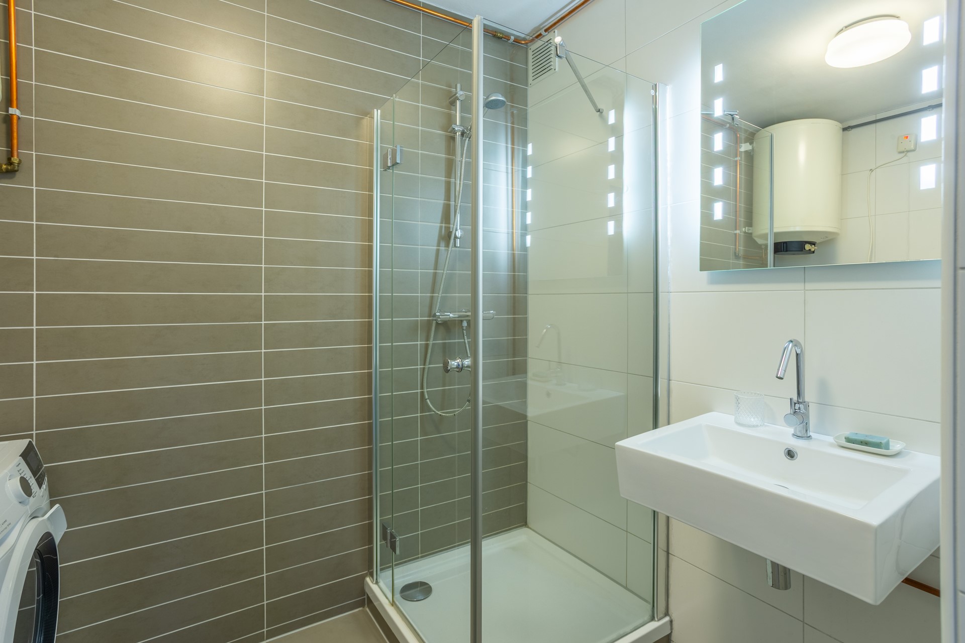 Het appartement beschikt over twee slaapkamers. Eén slaapkamer geeft toegang tot het zonnige, ruime balkon, een ideale plek om ’s ochtends van de zon te genieten of ’s avonds te ontspannen met een boek. De moderne badkamer is voorzien van een inloopdouche, vaste wastafel en aansluitingen voor wasmachine en droger. Het aparte toilet met fonteintje maakt het geheel compleet.